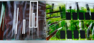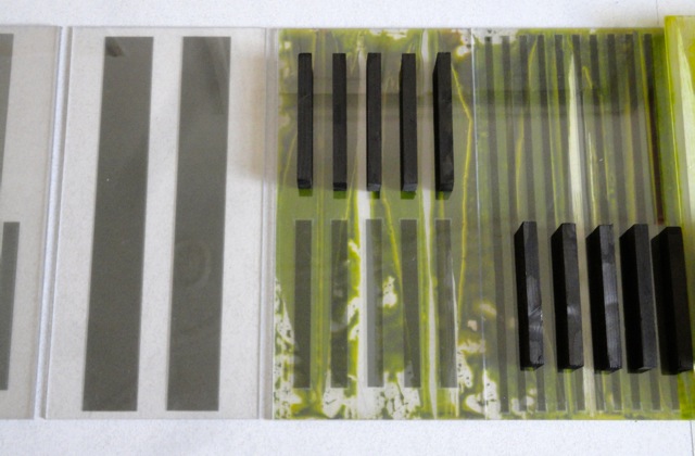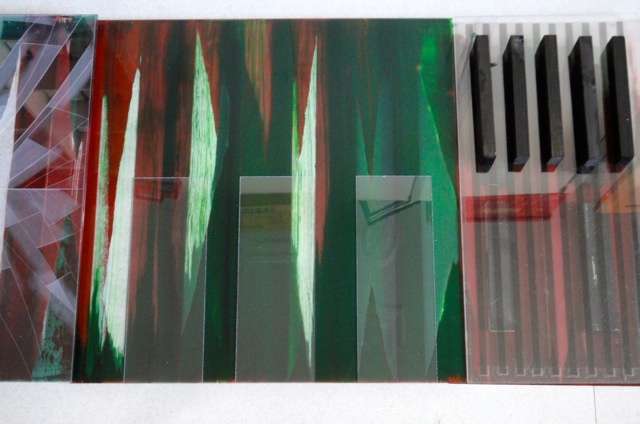 Acrylglas, Holz, Karton, Klebeband, Kapaline, Polarisationsfolie, Farbe, Gipsfaserplatten